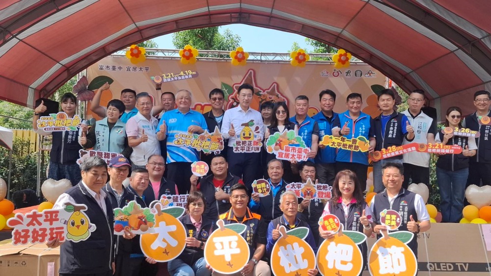【記者 劉金邦 / 臺中報導】台中市太平區於上週舉辦親子同遊品嚐枇杷、食農教育暢玩活動、徜徉馬卡龍公園地景歡樂三部曲的「枇杷FUN城市」活動後,接續由「枇杷祈福健行」重磅登場,於日前假太平聖和宮健康起走,吸引大批市民朋友攜家帶眷參與。在明媚春光暖陽照拂的晨間暖陽中健行,徜徉於草木扶疏田園景觀中,沿頭汴坑溪畔信步至景色優美的臺灣潭,經一江橋再回歸聖和宮主場地觀賞各式精彩節目、品嚐在地鮮甜枇杷及摸彩中大獎,身心健康山林浴加上吃喝玩樂一應俱全的優質活動,吸引超過2千位民眾前來共襄盛舉,現場洋溢歡笑氣氛!